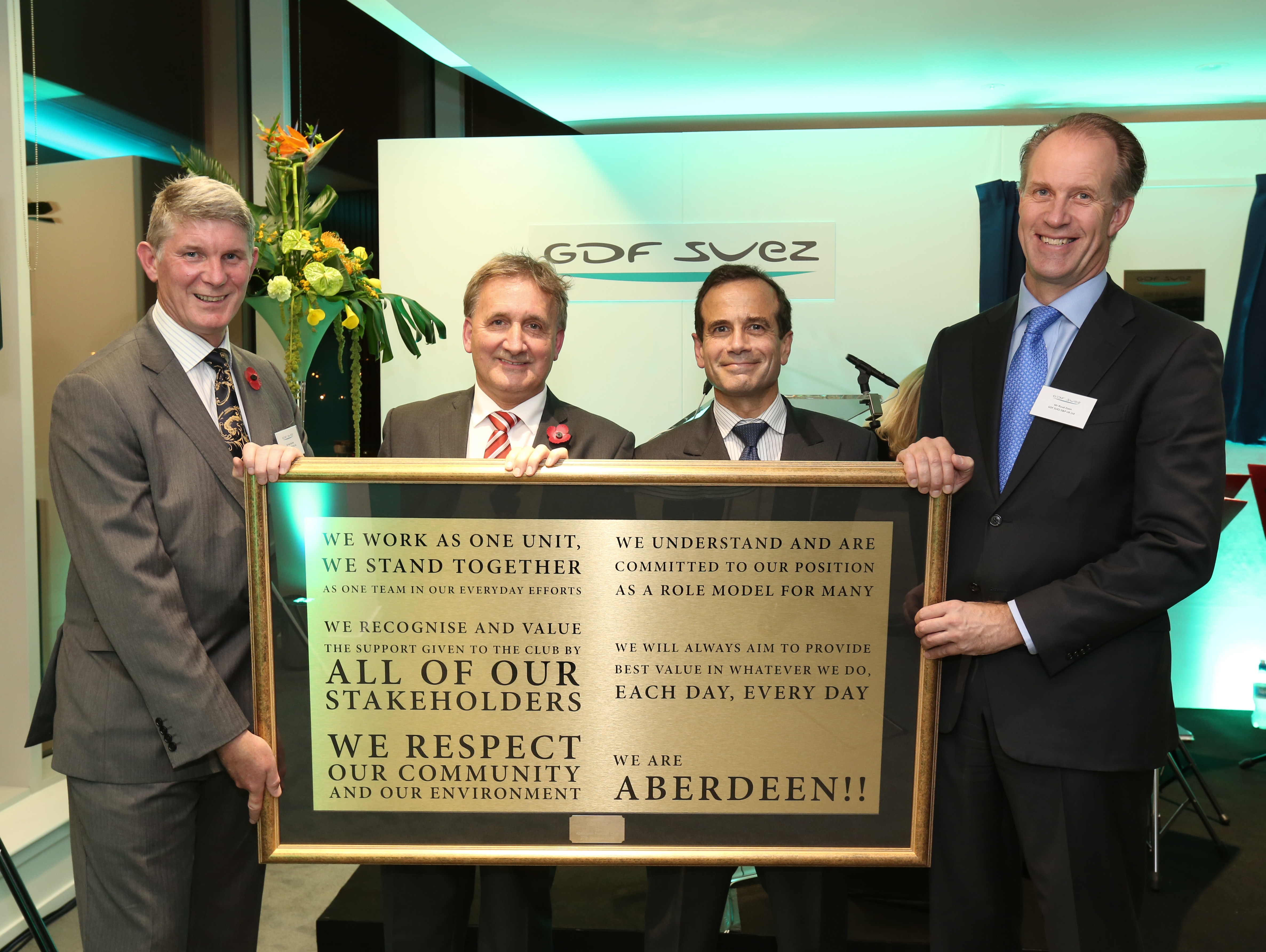 The new HQ offices of GDF SUEZ UK on Riverside Drive were formally opened by Dons Vice Chairman George Yule with the League Cup on show for this very prestigious event. The event was attended by many leading figures from Aberdeen-based business and politics and the senior management of GDF SUEZ in Paris and London also attended.