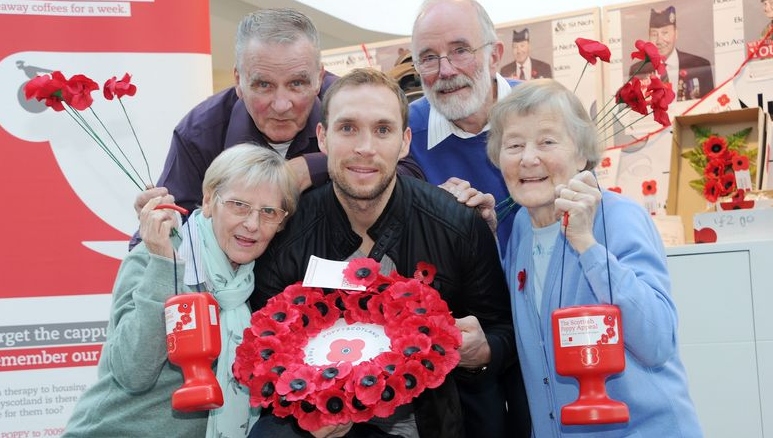 Ahead of Remembrance Sunday Russell Anderson joined volunteers from Poppy Scotland in the Bon Accord Centre to publicise this years' poppy appeal and to lend his support to this worthy cause.