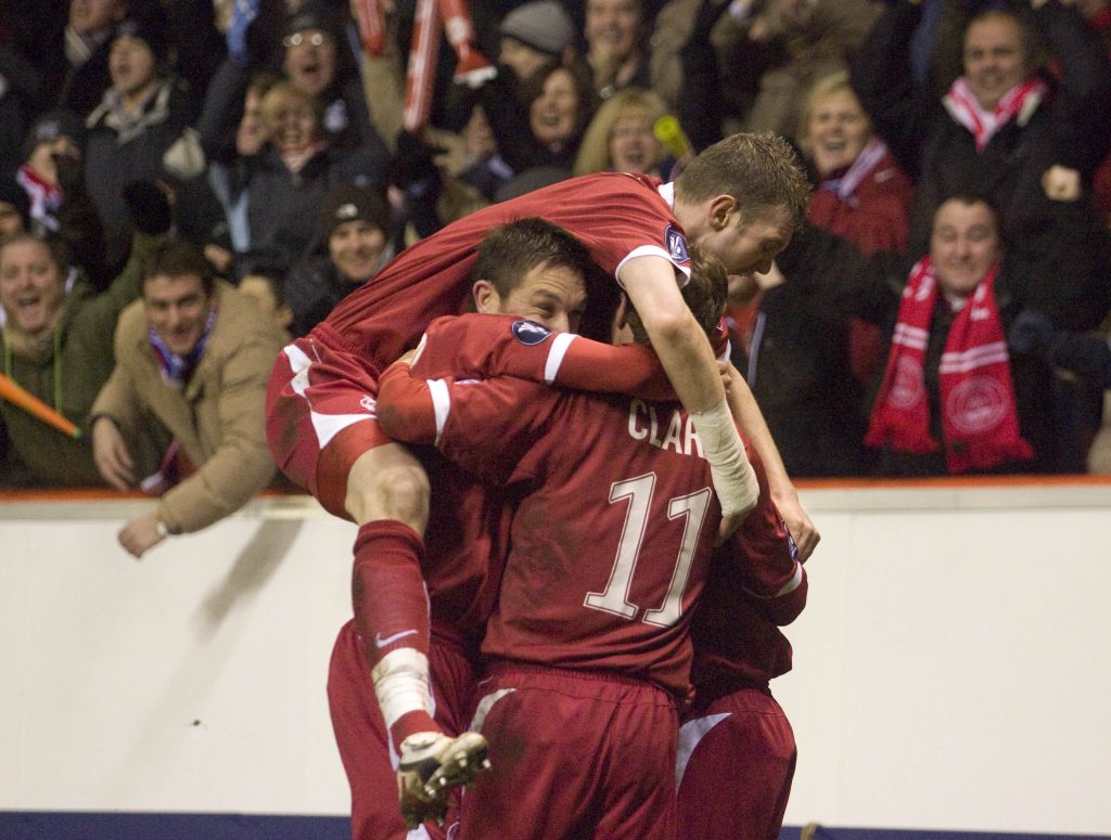 Ailton Almeida fired against a Dons post, but any hopes of a late comeback were dashed after 82 minutes. Richard Foster fired home from close range following a low cross from fellow substitute Chris Maguire to complete a night of celebration at Pittodrie.