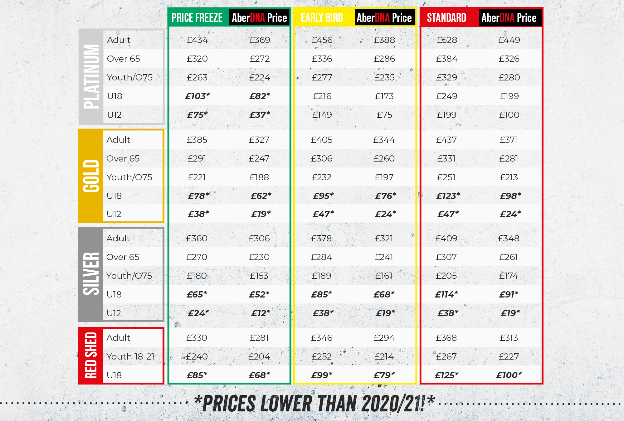 - 2021/22 season ticket prices frozen within Price Freeze window (Majority for the fourth season in a row!)