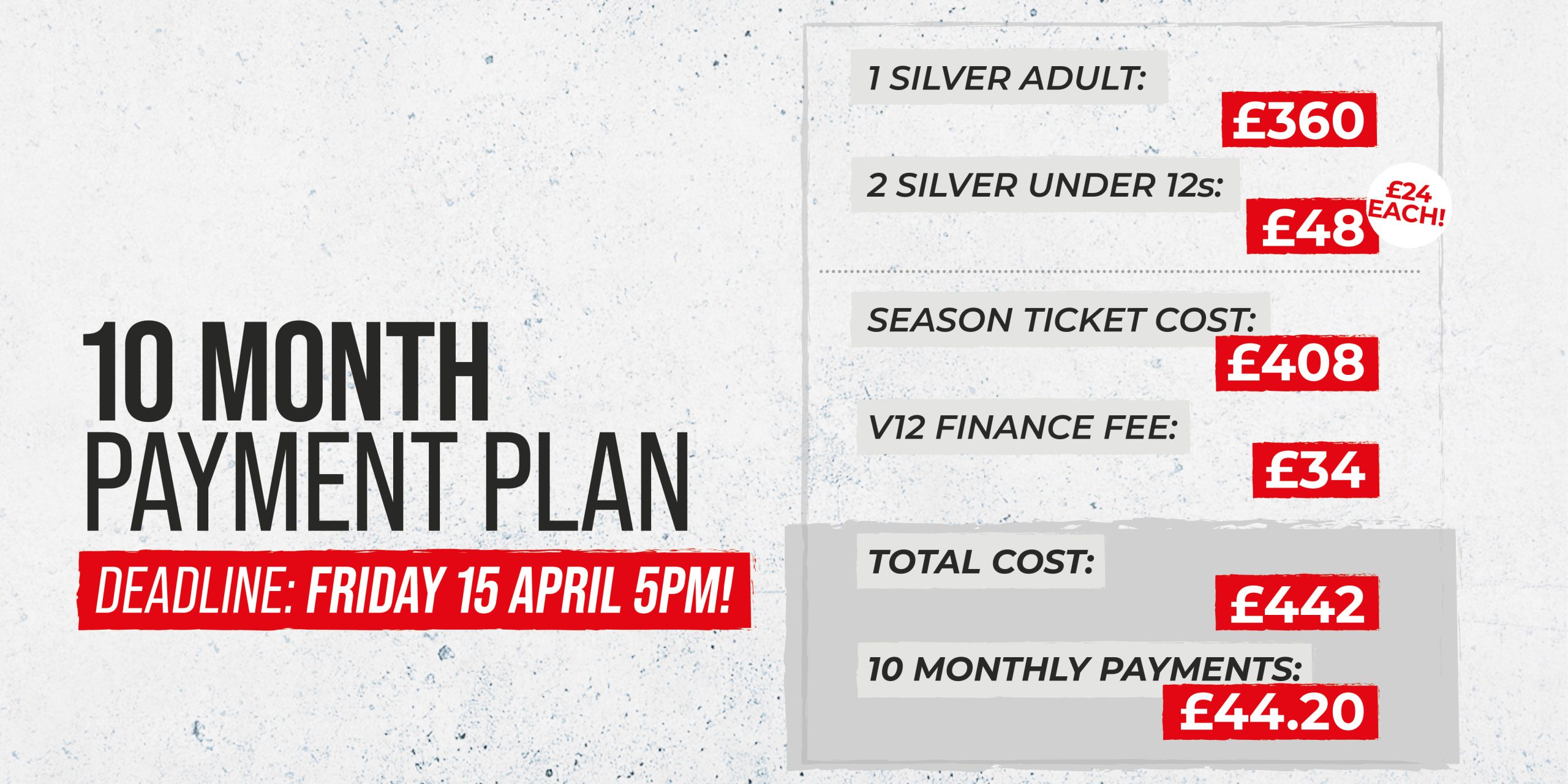 To take advantage of the price freeze on season tickets and spread the cost over 10 months you must purchase by 5pm on Friday 15th April. In addition to the 10 month option, don’t forget that you can also choose to pay over 4 months or 6 months at 0% interest.